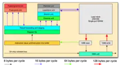 - Enfin, pour maximiser les performances en évitant d'attendre l'EIB, le code s'exécutant sur un SPU doit effectuer ses calculs en même temps qu'ont lieu les transferts, par exemple en utilisant plusieurs mémoires tampons.