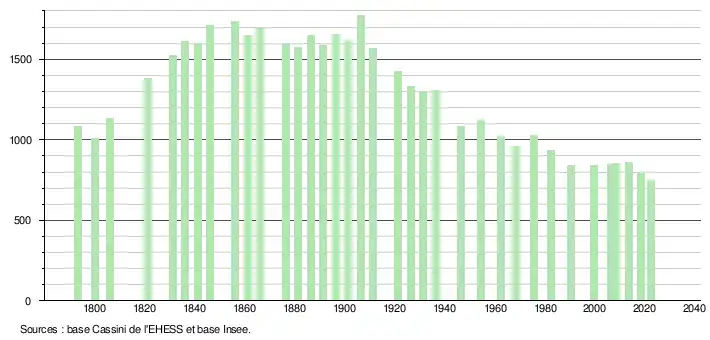 - ↑ Fiches Insee - Populations de référence de la commune pour les années 2006, 2007, 2008, 2009, 2010, 2011, 2012, 2013, 2014, 2015, 2016, 2017, 2018, 2019, 2020, 2021 et 2022.