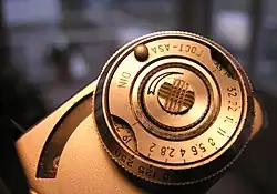 L’image de droite montre l'afficheur de la cellule d'un appareil Zenit - E, montée sur le côté gauche de l'appareil. Le cercle intérieur (plat) tourne à l’aide du bouton et règle la sensibilité du film (affichée en unités DIN et ASA à travers de minuscules fenêtres). Le cercle extérieur est couplé au marqueur mobile en forme de O dans l'échelle de gauche et doit être tourné jusqu'à ce que le marqueur recouvre l’aiguille (visible dans le coin gauche). Les expositions recommandées peuvent être lues sur une échelle latérale par rapport aux ouvertures possibles (échelle supérieure). L’appareil n'est pas directement couplé aux commandes d'ouverture et d'exposition[1].
