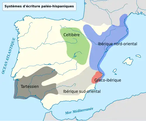 Le celtibère (ou hispano-celtique) est une langue celtique morte, parlée par les Celtibères dans le centre de l'Espagne avant et durant l'Empire romain. Il nous reste très peu de traces du celtibère, qui est attesté dans quelques toponymes pré-romains de la péninsule ibérique ayant survécu suffisamment longtemps pour qu'ils apparaissent dans des documents écrits, dans la formation de certains noms de personne (ce qui donne des indices concernant sa grammaire), ainsi que par quelques inscriptions sur des plaques de bronze ou de plomb, tracées en écriture celtibère qui combine des caractéristiques phéniciennes et grecques.