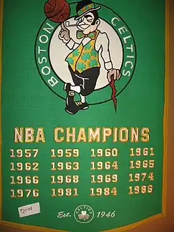 Cette équipe (renforcée en 1962 par John Havlicek) reste la même jusqu'en 1966 et terminera première de la saison régulière (seconde en 1966) et remporte six autres titres consécutifs de championne NBA en 1962 et en 1963 face aux Lakers de Los Angeles respectivement quatre victoires à trois[43] et quatre victoires à deux[44], en 1964 face aux Warriors de San Franscico quatre victoires à une[45], en 1965 et en 1966 à nouveau face aux Lakers de Los Angeles quatre victoires à une[46], puis quatre victoires à trois[47]. À l'issue de cette saison Red Auerbach est remplacé, à sa demande, au poste d'entraineur par Bill Russell, qui devient entraineur-joueur. C'est le premier entraîneur noir d'une grande équipe d'un des quatre sports majeurs d'Amérique du Nord.