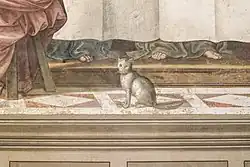 On croit généralement que Domenico, à cette époque au sommet de sa popularité et recevant des commandes de toutes parts, n'a fait que préparer le dessin (avec un décor similaire au Cénacle d'Ognissanti), confiant l'essentiel de la réalisation picturale à son frère Davide et à son beau-frère Sebastiano Mainardi.