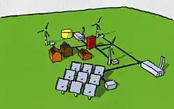 Une centrale électrique virtuelle est une combinaison de petites sources d'énergie (ou de systèmes disponibles de stockage d'énergie), qui sont activées et optimisées par un système informatique au service d'un opérateur distributeur d'électricité[1] ou des options d'achats auprès d'un producteur externe à l'entreprise de production.