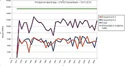 En 2010, la production électrique s'est établie à 11 754 GWh[13],[14], soit 2,88 % de la production électrique d'origine nucléaire française cette année (407 900 GWh[15]), et 2,1 % de la production électrique toutes sources confondues (550 300 GWh[15]).
