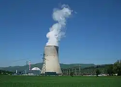L'eau sous pression dans le réacteur joue deux rôles : elle permet d'abord de refroidir le réacteur car chaque fission libère de l'énergie sous forme de chaleur. Sans ce système, le cœur du réacteur fondrait[5]. De plus, c'est cette énergie thermique qui est récupérée et transformée en énergie électrique. Dans ce premier circuit, l'eau, jouant le rôle de caloporteur, arrive dans la cuve du réacteur à 291,5 °C et en ressort chauffée à 324 °C[6] ; grâce à la forte pression à laquelle elle est soumise, environ 153 bars, elle reste tout de même liquide à plus de 300 °C. Cette eau est ensuite envoyée vers des générateurs de vapeur qui utilisent le fluide caloporteur pour vaporiser de l'eau dans un autre circuit. Cette vapeur est finalement envoyée vers des turbines entrainant un alternateur. Une petite partie de la vapeur est aussi prélevée et envoyée à des usines à quelques kilomètres de la centrale.