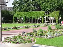 Le jardin de la partie sud de la place de l'hôtel de ville a été dessiné personnellement par Perret. Cette immense place, dont la construction était placée sous la direction des architectes Lagneau et Loisel[Note 13], a été transformée en 1990 : rétrécissement du boulevard qui la divisait (d'abord en couloir de bus, puis en voie de passage pour le tramway), création d'un parking souterrain, ajout de fontaines, d'arbres et de treillages en bois exotique (démontés en 2010), agrandissement des pelouses et des espaces fleuris.