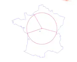Pour un ensemble fermé borné du plan, il existe un unique cercle de rayon minimal englobant l'ensemble. Son centre est le point pour lequel la plus grande distance à un point de l'ensemble est la plus petite possible. Ce cercle minimum est en général dénommé cercle circonscrit, sauf dans le cas d'un triangle obtus où le cercle minimum est le cercle de diamètre le plus grand côté.
