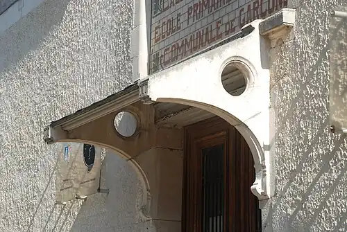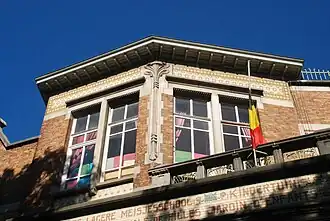 L'école abrite un remarquable préau couvert d'un remarquable plafond drapé et orné de sgraffites de Privat-Livemont.