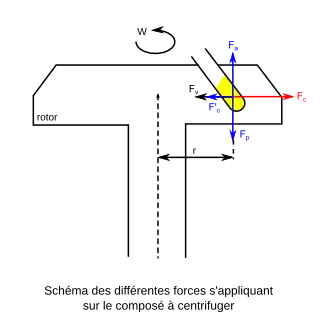 La séparation des composés d'un mélange est réalisable par décantation, sous l'action de la seule gravitation mais elle nécessite parfois une longue durée pour acquérir de bons résultats et est donc souvent inefficace. Il est donc plus efficace d'utiliser la centrifugation[1]. Au cours de cette opération de séparation, les composés dans le fluide situés à une distance r de l'axe de rotation sont soumis à différentes forces[2] :