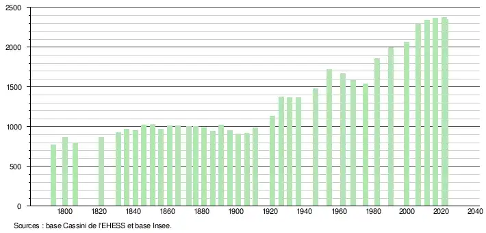 - ↑ Fiches Insee - Populations de référence de la commune pour les années 2006, 2007, 2008, 2009, 2010, 2011, 2012, 2013, 2014, 2015, 2016, 2017, 2018, 2019, 2020, 2021 et 2022.