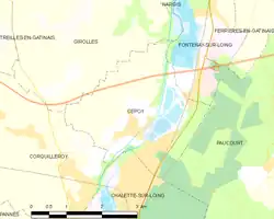 - à l'écart du bourg, à environ 300 mètres à l'Est, le Loing, rivière affluent de la rive gauche de la Seine, aujourd'hui non navigable, franchi par un pont nommé « pont de la Girafe »[16].