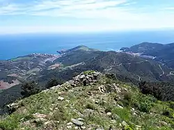 Vue sur la plage de Cerbère depuis la route menant au Cap. | |||||