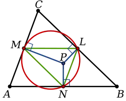 On peut en déduire le théorème de Feuerbach, en prenant le centre du cercle inscrit à ABC comme point P.