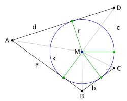 - ↑ (en) Martin Josefsson, « Calculations Concerning the Tangent Lengths and Tangency Chords of a Tangential Quadrilateral », Forum Geometricorum, vol. 10, , p. 122 (lire en ligne [PDF])