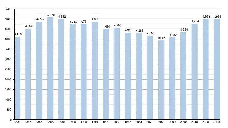 Les chiffres des années 1831 à 1970 tiennent compte des chiffres des anciennes communes fusionnées.