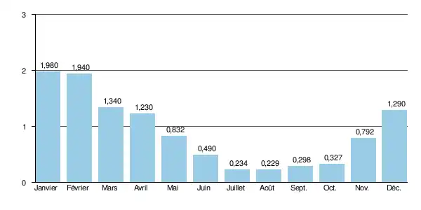 La valeur journalière maximale a été relevée le avec un débit de 36 m3/s[7].