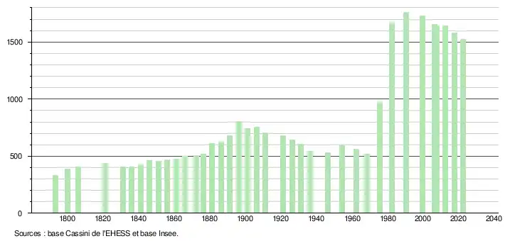 - ↑ Fiches Insee - Populations de référence de la commune pour les années 2006, 2007, 2008, 2009, 2010, 2011, 2012, 2013, 2014, 2015, 2016, 2017, 2018, 2019, 2020, 2021 et 2022.