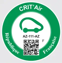 - ↑ « Arrêté du 21 juin 2016 établissant la nomenclature des véhicules classés en fonction de leur niveau d'émission de polluants atmosphériques en application de l'article R. 318-2 du code de la route », sur legifrance.gouv.fr (consulté le ) : « Cette classification s'opère en fonction de la catégorie du véhicule, de sa motorisation et :