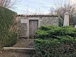 - Au lieu-dit la Croix, pont sur le ruisseau de la Leschère, parapet nord, face route, à 4,43 m de l'extrémité est, à 0,32 m au-dessus de l'arête supérieure du parapet. Altitude : 247,712 m. Coordonnées Lambert 2 : X=826.75, Y=130.03.