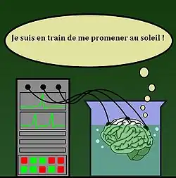 Le philosophe américain Hilary Putnam présente une nouvelle version de ces expériences dans le chapitre « Brain in a vat » (« Le Cerveau dans une cuve ») de son livre Reason, Truth, and History (Raison, Vérité et Histoire, 1981 ; traduit de l'anglais par Abel Gerschenfeld). Il propose d'imaginer qu'un savant fou décide, au cours d'une nuit, d'entrer dans votre chambre, puis de vous kidnapper après vous avoir endormi. De retour à son laboratoire, il retire votre cerveau et le place dans une cuve offrant des conditions physiologiques adéquates ; votre cerveau est alors connecté à un ordinateur très performant, capable d'envoyer des influx nerveux simulant parfaitement les informations transmises par votre corps à votre cerveau, dans une sorte de réalité simulée. Lorsque vous vous réveillez le lendemain matin, tout vous semble parfaitement normal. Ainsi, Putnam vous demande comment savoir, c'est-à-dire être parfaitement sûr, que vous n'êtes pas un cerveau dans une cuve en train de lire ce texte.