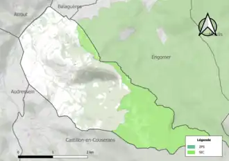 L’inventaire des zones naturelles d'intérêt écologique, faunistique et floristique (ZNIEFF) a pour objectif de réaliser une couverture des zones les plus intéressantes sur le plan écologique, essentiellement dans la perspective d’améliorer la connaissance du patrimoine naturel national et de fournir aux différents décideurs un outil d’aide à la prise en compte de l’environnement dans l’aménagement du territoire. Deux ZNIEFF de type 1[Note 4] sont recensées sur la commune[30] : le « massif du Bouireix et montagnes de Sourroque » (13 572 ha), couvrant 14 communes du département[31], et la « partie aval du Lez entre Les Bordes-sur-Lez et Saint-Girons » (76 ha), couvrant 9 communes du département[32] et une ZNIEFF de type 2[Note 5],[30] : les « massifs du mont Valier, du Bouirex et montagnes de Sourroque » (32 357 ha), couvrant 18 communes du département[33].