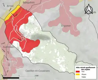 Les mouvements de terrains susceptibles de se produire sur la commune sont soit des chutes de blocs, soit des glissements de terrains, soit des mouvements liés au retrait-gonflement des argiles (nb aucune partie de la commune n'est argileuse!!!). Près de 50 % de la superficie du département est concernée par l'aléa retrait-gonflement des argiles, dont la commune de Cescau (NON!!)[41]. L'inventaire national des cavités souterraines permet par ailleurs de localiser celles situées sur la commune[42].