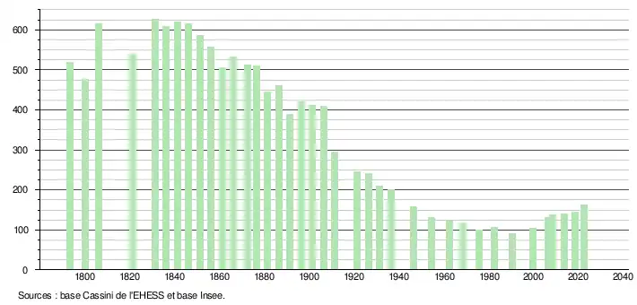 - ↑ Fiches Insee - Populations de référence de la commune pour les années 2006, 2007, 2008, 2009, 2010, 2011, 2012, 2013, 2014, 2015, 2016, 2017, 2018, 2019, 2020, 2021 et 2022.