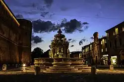 La piazza del Popolo est le centre de la cité antique, c'est là que se tiennent toutes les manifestations populaires (comme le 1er mai), les fêtes, les foires et les marchés du mercredi et samedi matin. Sur un des côtés se trouvent la mairie et le château dont les salles ont été récemment rénovées dans le style vénitien d'origine. Un grand escalier mène au marché couvert (légumes, plantes, viandes et poissons). Parallèlement, un autre escalier (entrée visible sur la photo) mène à la « Rocca » et aux services communaux. Au centre, une fontaine du XVIe siècle, appelée « fontaine Masini », est construite en marbre blanc.