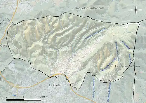 Les communes limitrophes sont Cassis, La Cadière-d'Azur, La Ciotat et Roquefort-la-Bédoule.