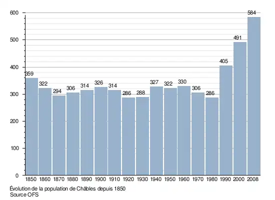 Le graphique suivant résume l'évolution de la population de Châbles entre 1850 et 2008[7] :