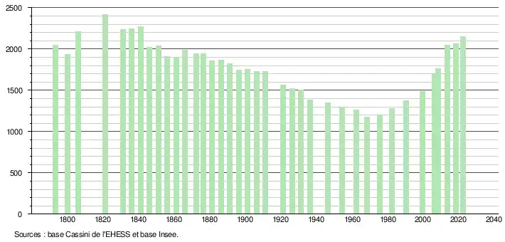 - ↑ Population municipale de référence en vigueur au 1er janvier 2025, millésimée 2022, définie dans les limites territoriales en vigueur au 1er janvier 2024, date de référence statistique : 1er janvier 2022.