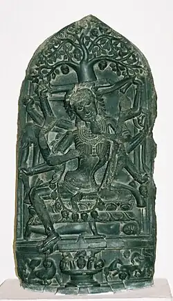 On la représente généralement dotée d'une épée ou d'un trident et d'une tête coupée. Figurant en tant que divinité secondaire sur les temples de l'époque médiévale, elle fait également l'objet d'un culte en tant que divinité principale dans certains temples shaktas (par exemple au Vaital Deul de Bhubaneswar) et occupe une place privilégiée dans les temples dédiés aux yoginis (en).