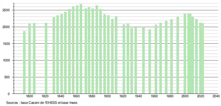 - ↑ Fiches Insee - Populations de référence de la commune pour les années 2006, 2007, 2008, 2009, 2010, 2011, 2012, 2013, 2014, 2015, 2016, 2017, 2018, 2019, 2020, 2021 et 2022.