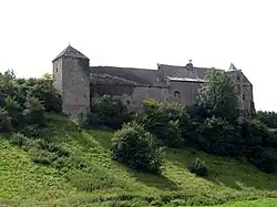 Le donjon médiéval se dresse sur l'angle nord, comporte deux niveaux (mais a pu en compter davantage) et repose sur un haut soubassement biseauté qui épouse la pente du terrain et fait fonction de contrefort. En plus du donjon, deux autres tours ont été érigées a posteriori: une tour semi-circulaire de quatre niveaux datant sans doute du XVe siècle dressée contre le corps de logis au nord-ouest et une tour d'angle carrée de trois niveaux du XVIe siècle dressée à l'angle oriental de l'aile sud mais désaxée[1].