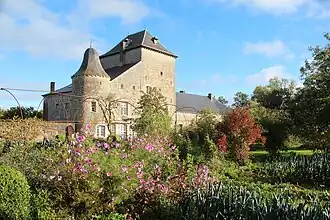 Le donjon médiéval construit en pierre calcaire et moellons de grès est haut de cinq niveaux et est constitué de murs d'une épaisseur d'1,20 m. L'angle nord-ouest fut reconstruit sur les deux tiers de sa hauteur et plusieurs baies sont percées au cours des siècles. Le donjon est couvert par une toiture débordante à quatre pans en ardoises. Ce donjon est encore aujourd'hui l'élément central et le plus élevé de ce château-ferme.