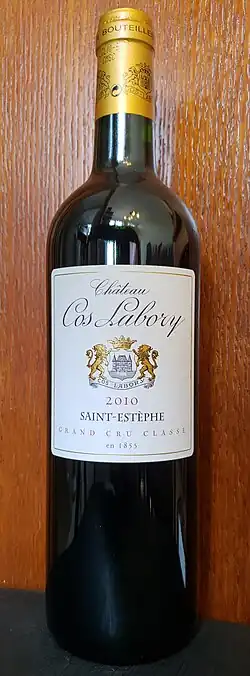 | Autres productions | Charme de Cos Labory (second vin), Le Saint Estèphe de Cos Labory, Château Andron Blanquet (cru bourgeois), |