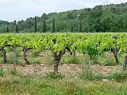 | Cépages | Cépages rouges grenache (45 %), syrah (25 %), mourvèdre (8 %), carignan (9 %) et cinsault (3 %) Cépages blancs roussane (5 %) et clairette (5 %). |