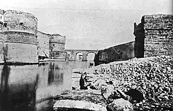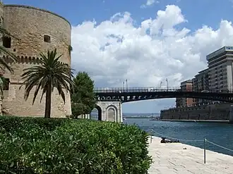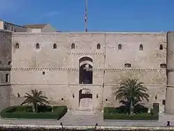 Le château aragonais (ou Castel Sant'Angelo), avec son plan quadrangulaire et sa vaste cour centrale, occupe l'extrême sud de l'Isola del Borgo Antico sur laquelle se dressait l'ancien village de la ville de Tarente, province de Tarente dans les Pouilles[1],[2].