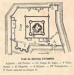 - Léon Marquis, Notice historique sur le château féodal d'Étampes, Auguste Aubry libraire, Paris, 1867 (lire en ligne)