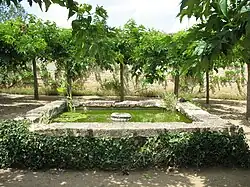 - le « jardin de méditation » entourant « la maison en if » face à la fresque, inspirée de Saint François d'Assise parlant aux oiseaux de Giotto ;