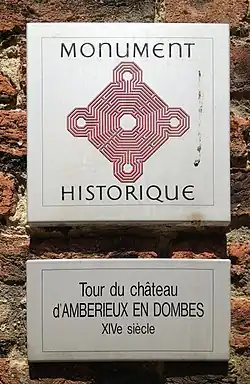 - 1 2 Charles-Laurent Salch et Joseph-Frédéric Finó (photogr. Dominique Martinez), Atlas des châteaux forts en France, Strasbourg, Éditions Publitotal, , 19e éd. (1re éd. 1977), 834 p., p. 16 (cf. Ambérieux-en-Dombes).