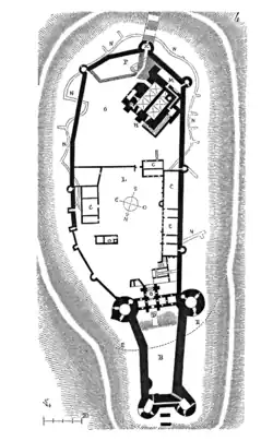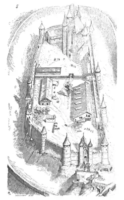 Plan du château d'Arques au XIIe siècle d'après un dessin de Viollet-le-Duc.