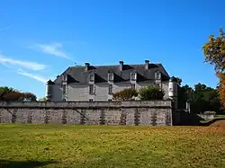 On accède au château en franchissant les douves par un pont, et l'on trouve en face le logis principal avec une aile, bâtiment plus récent qui fait un retour en équerre. La porte et les fenêtres du logis sont ornées de sculptures, et le toit présente un oculus entouré de deux ouvertures de chaque côté.
