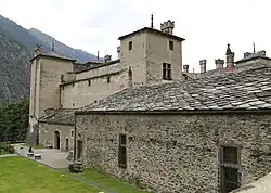 - ↑ Le propriétaire du château fut jusqu'à 1841 Gabrielle de Canalis de Cumiana, veuve de François-Maurice-Grégoire de Challant. À sa mort, il passa à son second mari, Amédée-Louis Passerin d'Entrèves, et, désormais privé de droits seigneuriaux, il fut vendu à Alexandre Gaspard de Châtillon et enfin au baron Marius de Vautheleret.