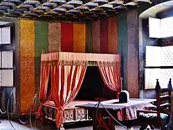 Une des premières chambres qu'on rencontre est la chambre de Marguerite de la Chambre, épouse de Louis de Challant, et ensuite celle de Mencia de Bragance, épouse de René de Challant.
