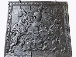 - et la taque de cheminée moulée aux armes des seigneurs de Raville, toujours visible aujourd'hui, sur l'un des murs de l'actuel amphithéâtre.