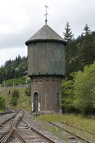 Conçu par l'ingénieur Wilhelm Nördling (1821-1908) et construit en 1867, il servait à approvisionner les locomotives. Ce style de réservoir était particulier aux lignes du Cantal.