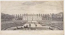 Vue du château de Bagnolet depuis le bassin circulaire du milieu du parterre.