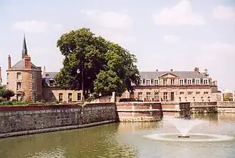Devant le château se trouvait un superbe parterre de broderies, organisé suivant quatre compartiments. Il n'y avait pas de bassin au centre, entre ces parterres, mais un grand vide. Le château était lui entouré d'eau, ce qui suffisait comme présence aquatique aux pieds du château.