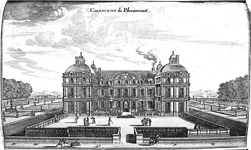 - ↑ Veuë et Perspectiue du Chasteau de Blerancourt, gravure d'Israël Silvestre.